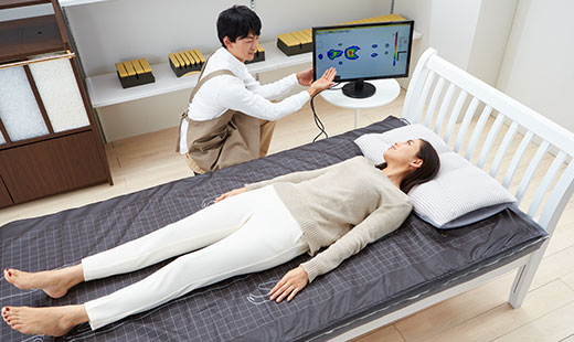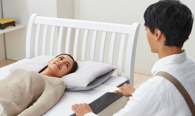 お一人おひとりの体型を測ることで、最適な枕とマットレスを探ります。